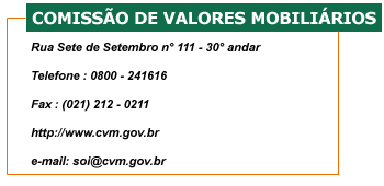 RECLAMAR, FAZER VALER OS SEUS DIREITOS - No caso do não cumprimento das regras vigentes, o investidor tem o direito de apresentar sua reclamação, sem qualquer tipo de constrangimento ou de ameaça junto ao profissional contratado, à instituição, à bolsa de valores ou mercado de balcão, ou junto à CVM, órgão regulador responsável pela fiscalização do mercado de valores mobiliários.