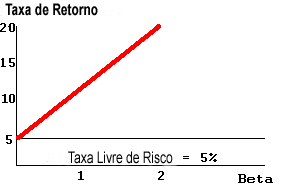 A linha vermelha é a Linha de Mercado de Títulos. Como obtivemos isto? Nós inserimos alguns betas na equação Ks = Krf + B ( Km - Krf).