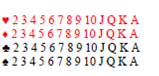 | P(Rei ou Copas) = P(X ou Y) = 4/52 + 13/52 - 1/52 = 30,77% |