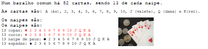 Por exemplo, qual é a probabilidade de uma carta escolhida ao acaso de um baralho seja um rei ou copas?
