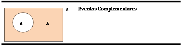 O complemento de um evento tal como A consiste de todos eventos não inclusos em A. Por exemplo, se no lançamento de um dado, o evento é obter um número ímpar, o complemento de A é obter um número par. Assim, o complemento do evento A contém sempre a porção doo espaço amostral que o evento A não contém. Veja a figura seguinte: