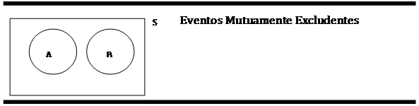 Aqueles eventos que não podem ocorrer juntos são chamados de eventos mutuamente excludentes. Por exemplo, no arremesso de uma única moeda, os eventos cara e coroa são mutuamente excludentes. A probabilidade de dois eventos mutuamente excludentes ocorrendo ano mesmo tempo é zero. Veja a figura seguinte: