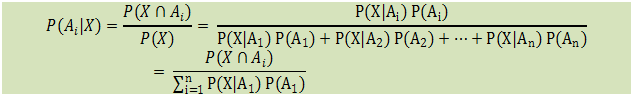 Poderemos agora querer inverso, isto é, P(Ai|X)! Isto é, qual a probabilidade de ocorrer Ai dado que tenha ocorrido o evento X. Esta última probabilidade é encontrada pelo Teorema de Bayes: