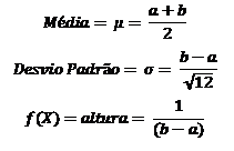 As equações seguintes são usadas para se encontrar a média e o desvio padrão de uma distribuição uniforme: