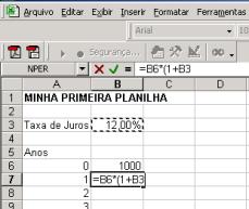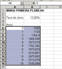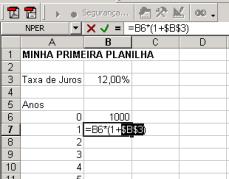 Agora aponte para a célula B6, a que contém 1000. Você pode apontar com o mouse (clicando quando você está sobre B6), ou você pode apontar com as teclas de seta.