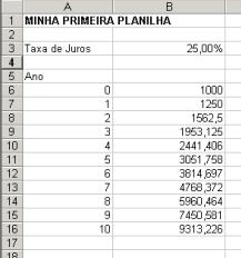 Conteúdos da célula de cima * (1 + taxa de juros)