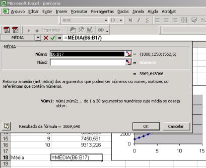 Na célula B18 calcularemos o valor médio das células B6:B16 (isto tem muito pouco significado econômico...). Aqui está o que fizemos: