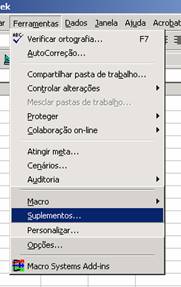 Abra o Excel e vá a Ferramentas|Suplementos: