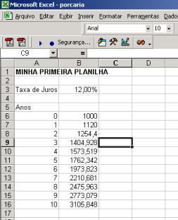 Conteúdos da célula de cima * (1 + taxa de juros)
