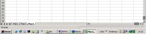 A instalação default para o Excel começa cada planilha eletrônica nova com 3 folhas. Isto significa que o fundo de sua tela se parece com isto: