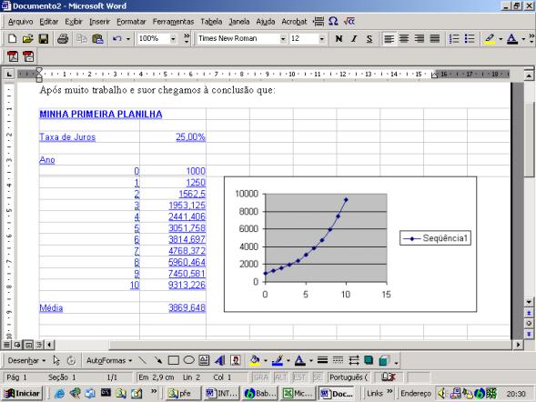 Até agora você está no Excel. Agora volte atrás a seu documento Word, e vá onde