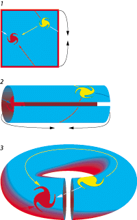 e então mais adiante em uma forma de toróide (rosquinhas