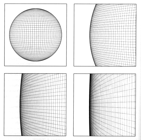 pontos e linhas sobre superfícies curvas. Estas geometrias