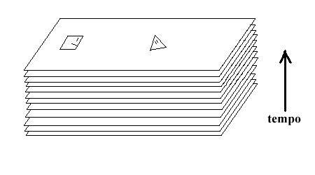 pilha de universos 2-D. O tempo procede do fundo da pilha para o
