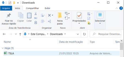 O arquivo de dados está no formato csv e armazenado no seu diretório download.