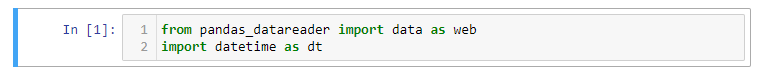 Com isso importamos o módulo data da biblioteca pandas_datareader com a alias (apelido) web. Este módulo data será usado para obter nossos dados do Yahoo Finance API. Estamos, também, importando o módulo datetime de maneira que possamos especificar time frames. E para fazer isso, usamos a função datetime: