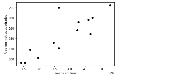 data1 = pd.read_excel('casas.xlsx') # Pontos do Gráfico na cor Preta (c = 'k')