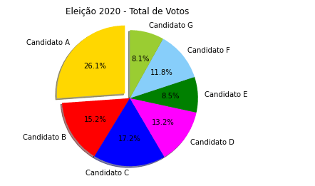 plt.pie(votos, explode = explode, labels=candi, colors=cores, autopct='%1.1f%%', shadow=True, startangle=90)