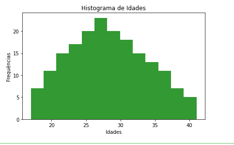 idade= ([19, 21, 23, 25, 25, 29, 31, 33, 35, 37, 39, 41, 31, 19, 40, 34, 28, 32, 29, 34, 27, 27, 36, 29, 37, 31, 29, 33, 34, 39, 26, 27, 37, 33, 38, 34, 33, 29, 36, 28, 27, 34, 28, 27, 30, 28, 37, 37, 32, 36, 34, 38, 29, 30, 20, 30, 31, 25, 32, 27, 28, 38, 29, 28, 33, 37, 40, 41, 40, 27, 30, 27, 25, 25, 29, 25, 39, 29, 39, 24, 25, 28, 24, 29, 29, 24, 24, 28, 31, 36, 24, 24, 33, 34, 31, 28, 24, 30, 31, 37, 17, 30, 27, 32, 35, 26, 26, 34, 33, 25, 24, 32, 32, 22, 30, 25, 32, 25, 21, 20, 30, 29, 18, 23, 23, 35, 20, 18, 27, 29, 17, 35, 17, 21, 28, 17, 23, 25, 24, 23, 20, 29, 22, 21, 22, 26, 19, 24, 25, 22, 19, 23, 18, 22, 35, 30, 28, 27, 29, 29, 22, 25, 22, 29, 26, 22, 19, 22, 33, 24, 29, 28, 19, 26, 29, 19, 31, 21, 21, 26, 31, 29])