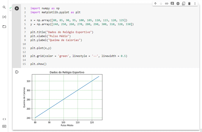 Você também pode configurar as propriedades de linha para a grade, como esta: grid(color = ‘cor’, linestyle = ‘linestyle’, linewidth = numero).