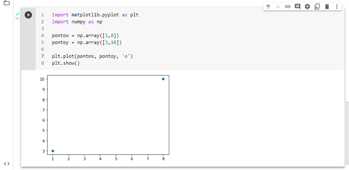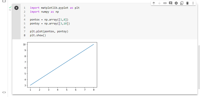 Se precisamos plotar uma linha de (1,3) a (8,10), temos que passar dois arrays [1,8] e [3,10] para a função plot().