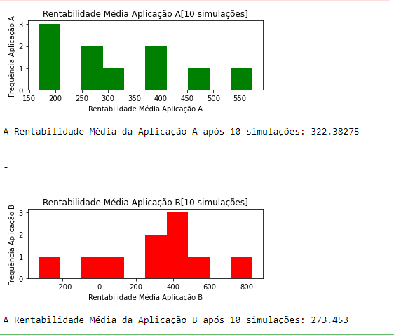 print("A Rentabilidade Média da Aplicação B após " + str(num_simulacoes) + " simulações: " + str(ResultadoB_medio))