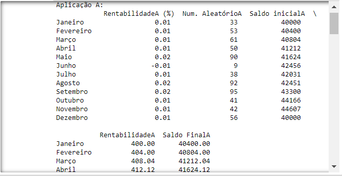 matriz_rentabilidadeA['RentabilidadeA'] = matriz_rentabilidadeA['Saldo inicialA'] * matriz_rentabilidadeA['RentabilidadeA (%)']