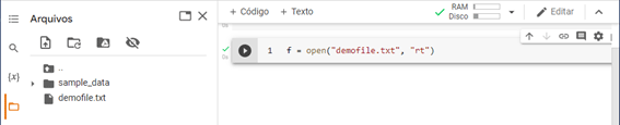 APÊNDICE: No Google Colab colocamos o arquivo demofile.txt que criamos no ambiente do Google Colab: