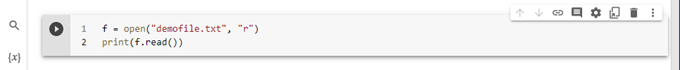 Criamos um arquivo demo_file_open.py no Google Colab e salvamos junto com o demofile.txt no diretório C:\Users\Bertolo.