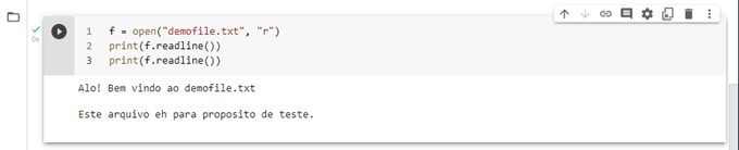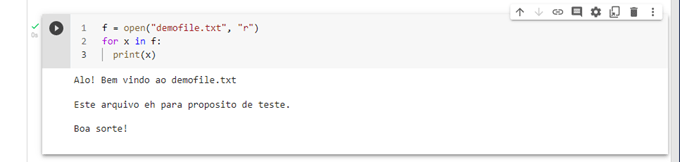 Se fizermos no Google Colab o arquivo demofile.txt não pode ter acentuação.